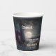 Copa de papel de Halloween con un cuadro de paisaje nocturno oscuro con luna llena, un gato y araña malvados y un murciélago. ¡Perfecto para tu cerveza!