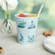 Gatos Guay haciendo yoga en un diseño verde marino.
