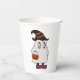 Vasos De Papel Ghost holding pumpkin and wearing witch hat