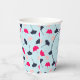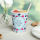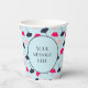 Estas tazas de papel de bonito presentan un patrón de hojas de ginkgo en azul marino, rosa claro y un magenta de coral brillante infundido contra un fondo azul claro. Hay mucho espacio en el centro para añadir tu propio mensaje personalizado.