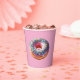 Happy pink glitter donut paper cup. Party and birthday cup.