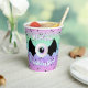 Pastel de papel de Gótico con dos líneas que puedes personalizar con un nombre y un dicho. Helado de color pastel y espolvorines de gótico pastel. También hay servilletas y platos a juego.