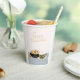 Un regalo de agradecimiento por el diseño con comida y una bebida de chocolate caliente. Este diseño parece realmente efectivo en estas tazas de papel
