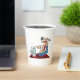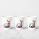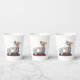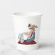 Un fontanero gracioso que se ve con un émbolo para desbloquear un inodoro. Este diseño parece realmente efectivo en estas tazas de papel
