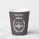 Creativas copas de fiesta de graduación de la escuela de derecho para la celebración de graduación de abogados con escalas de personalizado de justicia de fondo gris. Editar texto para agregar su nombre.