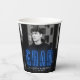 Copas personalizadas de papel para graduación con la foto del graduado con "Grad" en letras azules de neón. Personalice las tazas de papel de graduación de neón añadiendo el nombre y el año de graduación. Las tazas de papel de neón son perfectas tanto para fiestas de educación secundaria como universitarios.