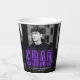 Copas personalizadas de papel para graduación que presentan la foto del graduado con "Grad" en letras de neón morado. Personalice las tazas de papel de graduación de neón añadiendo el nombre y el año de graduación. Las tazas de papel de neón son perfectas tanto para fiestas de educación secundaria como universitarios.