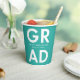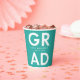 Copas de papel de graduación personalizadas con "Grad" en letras blancas en negrita con un fondo turquesa o color de su elección. Personalice las tazas de papel de graduación añadiendo el nombre y el año de graduación. Las tazas turquesa de papel para graduación son perfectas tanto para fiestas de secundaria como universitarios.