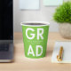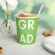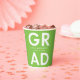 Copas de papel de graduación personalizadas con "Grad" en letras blancas en negrita con un fondo verde lima o color de su elección. Personalice las tazas de papel de graduación añadiendo el nombre y el año de graduación. Las tazas de papel de graduación verde limo son perfectas tanto para fiestas de bachillerato como universitarios.