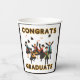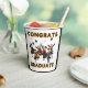 El diseño de estas tazas incluye las palabras "Graduados de Felicidades" con letra de estampado estúpido más letras de color gris, contorno amarillo que muestra a los estudiantes celebrando luego de una graduación en este tema educativo. Todas las tazas vienen en un conjunto de ocho o más y tienen 8 oz de fabuloso para fiestas de cumpleaños, picnics de verano y eventos. Todos los platos están aprobados por la FDA para el contacto con los alimentos y mantienen las bebidas calientes o frías impresas opcionalmente en Estados Unidos.