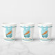 Añada un toque personalizado a su próximo fiesta con estas tazas de fiesta con tema de esquí acuático. Disponen de un ilustracion de un esquiador en naranja, frente a un agua azul verde azulado y azul claro. El gráfico está en forma de chaleco salvavidas. El mensaje de su personalizado aparece debajo del ilustracion en la letra del naranja.