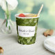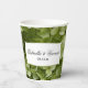 Personalice estas tazas de papel Boda de Annabelle verde bonito Hydrangeas para su fiesta informal y elegante de verano en la recepción matrimonial o en la ducha de novia. Estas tazas desechables informales pero elegantes cuentan con una fotografía floral cercana de una flor de horangea verde claro.