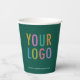 Easily personalize our 8 ounce paper cups with your company logo and custom text. These FDA approved paper cups are for cold and hot drinks. The dimensions for the 8 oz cups are 3.75 inch x 3 inch. Available with or without lids. Also available in 12 oz size. Designed in dark green and other colors (all colors are customizable). Sold in sets of 8. Low minimum order quantity and no setup fee. Printed in the U.S.A.