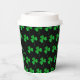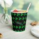 En un fondo negro de moda, este patrón de sacudidas de St Patrick es brillante y brillante. En el medio, "Happy St Patrick's Day" se muestra con elegante tipografía entrelazada. ¡Perfectas tazas de papel para las más elegantes celebraciones del Día de San Patricio!