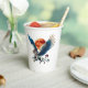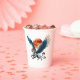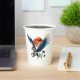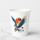 Griffin al estilo de Glorantha RuneQuest volando con sus alas de plumas esparcidas contra una creciente luna roja en el fondo. por martinspixs.