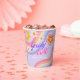 Groovy One Retro Arcoiris Primer Cumpleaños Cups con fondo morado para niñas