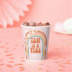 Diez inspirado en Retro es una fiesta de cumpleaños Vibe 10 tazas de papel con arcoiris estilo hippie, daisies y fuentes boho y colores.