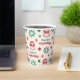 Navidades tazas de papel fiesta con un Papá Noel fresco usando gafas de sol y el texto Feliz Navidad con un tipo de letra de estilo retro rodeado de estrellas retro. Tonos rojos y verdes sobre un fondo de marfil crema claro.