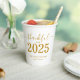 Elegante y elegante fiesta de agradecimiento personalizado. Celebra el día de gracias con estilo con este moderno tazas de papel fiesta. Características de diseño "agradecido por el 2025" en tipografía de escritura dorada sobre un fondo blanco limpio. Personalice este producto agregando el nombre de la familia o el texto de su personalizado. Fácil de personalizar. ¡Feliz Día de Acción de Gracias!