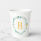 Vasos De Papel Guirnalda floral con monograma en aqua y amarillo