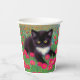 Cups de papel con un gato Gustav Klimt tuxedo! Este bonito gatito blanco y negro se encuentra en un campo de flores rojas, azules, blancas y naranjas. ¡Un regalo increíble para los amantes del gato y del arte austriaco!