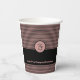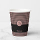 Una taza de papel promocional de peluquería rosa y negro muestra el sitio web de la peluquería Initials, tagline y company. Personalizares iniciales y texto para que funcione en tu peluquería. Lo siguiente - Personalizar con la herramienta de diseño - permite modificar el color de relleno. Para obtener ayuda o para discutir un diseño personalizado, póngase en contacto con https://t.me/KBMD3signs_chat.