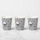 Copa de la fiesta de Halloween decorada con calaveras detalladas, arañas y llaves de época sobre un fondo gris. Perfecto para reuniones espeluznantes, fiestas góticos o mesas de trucos o de bebidas.