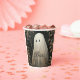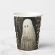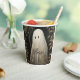 Estos vasos de papel de Halloween presentan un fantasma en un estilo sombrío e inspirado en lo gótico con elementos botánicos terrosos y tonos profundos y sombríos. La elegante letra “Boo” añade un toque refinado, lo que los hace perfectos para temas de romance gótico o fiestas de cócteles espeluznantes. Su diseño oscuro y encantador da a la decoración de tu mesa un toque distintivo y elegante.