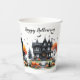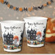 ¡Entra en el espíritu de Halloween con estas encantadoras tazas de fiesta de papel! Presentando "Halloween feliz" en una tipografía de escritura tipográfica en ambos lados, el diseño muestra tres casas encapuchadas de negro adornadas con brotes de naranjas de calabazas, jack-o-lanterns, y árboles espeluznantes. El clásico esquema de color blanco y negro, combinado con el guión caprichoso, logra el equilibrio perfecto para las celebraciones de Halloween para adultos y niños. Estas tazas están diseñadas para traer un toque de diversión y festividad a su fiesta de disfraces o espeluznante evento, ¡convirtiéndolas en una deliciosa adición a cualquier reunión de Halloween! Halloween Halloween Halloween fiesta diversión Naranja negro casa de época blanca