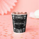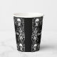 Copas de papel de Personalizado gótico de Halloween Black Skull Damask. Este diseño fue creado con ilustracion y elementos vintage y se ha unido para crear un aspecto gótico oscuro. Cránulos y diseño de patrones damasquinados en blanco y negro, genial para fiestas de Halloween. Personalizar el texto para que se ajuste a los detalles del fiesta.