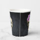Estas tazas de fiesta temblorosas de moda de Halloween presentan un cráneo blanco acentuado con hermosos rosas morados sobre un fondo de textura negra. Perfecto para su fiesta de Halloween o eventos de temática gótica.