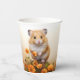 Estas tazas de papel presentan una encantadora imagen de un hámster sirio parado en sus patas traseras entre flores naranjas. Ideal para una fiesta de cumpleaños para cualquiera que ame hámsters. contenido generativo