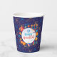 Happy Hanukkah Party Jewish Holiday decorative Menorah. Hanukkiah Symbol. Jewish Holiday Chanukahs Decoration with traditional Chanukah decorative symbols - Navy Blue color hanukkiah menorah, candlestick with candles, star of David and neon blue glowing lights illustration. Hanukkah Festival of lights Event Decoration. Jerusalem, Israel. Crafts & Party Supplies > Party Supplies > Tableware > Paper Cups, Judaica Modern Design. For a festive Hanukkah 2025 table setting.