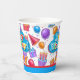 A Colorful Happy Birthday Paper Cup In A Celebration Style With Balloons, Hats And Gifts For A Kids Party