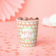 Los conejos blancos de conejito se saltan alrededor de este vaso de papel. ¡Ideal para primavera, Pascua, cumpleaños o para cualquier amante del conejito! Disponible en melocotón, azul o verde. Personaliza con tu propio mensaje especial.