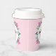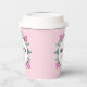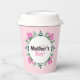 Happy Mother's day paper cups decorated with pink tulips, white tiny flowers and green leaves.