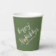 Fijar una mesa divertida para el Día de San Patricio con la ayuda de este vaso de papel que presenta una tipografía elegante de la frase 'Happy St. Paddy's' en todos los colores de la bandera irlandesa; texto blanco decorado con un shamrock naranja en un fondo verde. Busque ID336 para ver otros productos con este diseño.