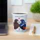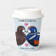 Celebre cualquier aniversario de boda con estas elegantes tazas de papel, que cuentan con un hermoso par estilizado de pollos Harlequin! Las elegantes letras con confeti hexagonal sobre un fondo azul claro le dan un toque memorable a esta ocasión especial y a este hito. Personalizar con nombres de aves amorosas y años de matrimonio. Diseño © W.H. Sim. Ver más en zazzle.com/expressionsoccasions