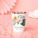 Este colorido vaso de papel destaca por su vibrante disposición de hibiscos acuarelas y follaje tropical. Las bonitas flores de los hibiscos acuden en tonos melocotón y naranja, con palmeras tropicales y toques verdes. Es una elección perfecta para bodas en la playa, bodas de destino, bodas tropicales, luaus, fiestas y más. Personalice el texto deseado editando el texto de ejemplo en la plantilla de diseño fácil de usar. ¡Aloha!