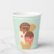 Diseñados para hacer juego con las invitaciones de cumpleaños de nuestros niños con helados sundae, estos bonitos vasos de papel personalizados presentan un cono de tres cucharas en colores pastel frescos con "Happy Birthday [Name]" en adorables letras de estilo retro vintage.
