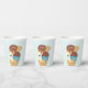 Diseñados para hacer juego con las invitaciones de cumpleaños de nuestros niños con helados sundae, estos bonitos vasos de papel personalizados presentan un cono de tres cucharas en colores pastel frescos con "Happy Birthday [Name]" en adorables letras de estilo retro vintage.