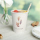 Con tres hojas de cascada festivas en tonos morados y naranjas, este vaso tiene un lugar para nombres y fechas u otro texto. Está diseñado para coordinarse con el otoño deja boda de otoño y colección de ensayos de cena, pero también funcionaría bien para un compromiso de otoño o fiesta de aniversario también.