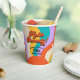 Una copa fiesta que te hará retroceder en el tiempo a la era de las tonterías de los años 70 mientras celebras el cumpleaños 70 del invitado de honor en un divertido estilo retro. Prepárate para revivir la paz, el amor y la libertad del movimiento hippie con un fiesta groovy que seguro transportará a todos a una época de flores y bolas de discoteca. Este diseño tiene una osada explosión de sol colorida con rayos ondulados que emiten su energía efervescente en el fondo. Una fuente groovy de los años setenta explica "¡Hola Setenta!" al estilo de aquella época pasada. Personalice la plantilla de texto con el nombre y la edad del invitado de honor. Estas tazas son adecuadas para bebidas frías y calientes. Puedes comprarlos con o sin tapas.