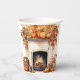 Café de Papel de Otoño Vintage, Cups de Papel de Acción de Gracias, Hola Copa de Papel de Otoño. Copa de Papel de otoño. Calabazas de hojas de otoño y chimenea.