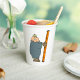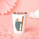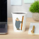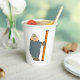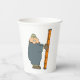 Un hombre sostiene una escalera a punto de subirla. Este diseño parece realmente efectivo en estas tazas de papel