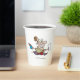 Un hombre corriendo con café y un trozo de papel. Este diseño parece realmente efectivo en estas tazas de papel