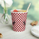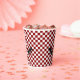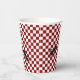 Cubos de papel caprichosos hechos en un patrón de cuadros rojos y blancos. Los gráficos de grandes hormigas negras arrastrándose a través de la taza agregan un toque divertido para picnics y cocineros. Hay productos que coinciden.