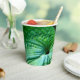 Las hojas de hosta exuberantes brillan con gotas de rocío para una impresionante taza de papel. Sería perfecto para un fiesta de jardín, un boda al aire libre o un fiesta.