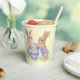 Taza de papel con conejitos de acuarela dulce y su huevo de Pascua.