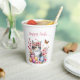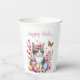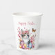 Copas de papel de Pascua con un gatito con flores de cerezo y huevos de Pascua. ¡Personalizable.